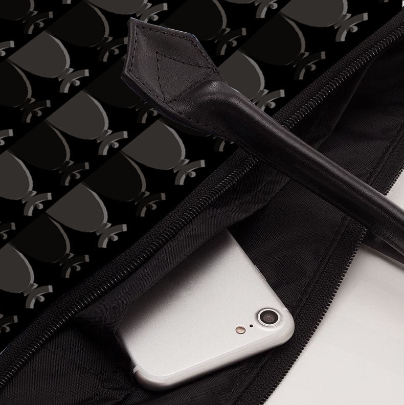 Doublure imperméable en satin noir - Double poignée en cuir véritable (50X54cm) - Contient 3 poches intérieures : 2 ouvertes, 1 zip sécurisé - Fabriqué au choix en satin, en cuir lisse ou cuir texturé de haute qualité.